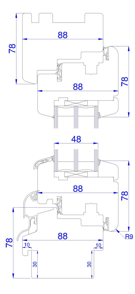 Low-energy buildings have become more and more popular. Although costs of erection of a low-every house is higher than that of a building erected in a traditional technology, low energy and heating bills will make your investment return within several years. Therefore, it is worth investing in windows with better thermal parameters. Using these sections one need not to be afraid of large glazing designed on the southern side by architects. The thickest profile that measures over 9 cm and 3-pane glazing unit with its thickness of 48 mm is additionally equipped with a hot inter-pane frame as standard, thus ensuring additional heat.