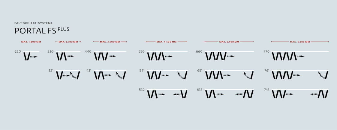 Skrzydła mogą być składane na prawą, lewą bądź na każdą ze stron. W ramach jednej konstrukcji można połączyć nawet do 7 skrzydeł, o wadze do 80 kg każde. Łączenie skrzydeł przesuwnych możliwe jest również ze skrzydłami rozwierno- uchylnymi.