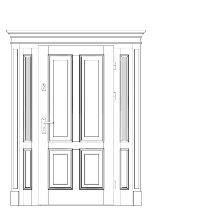 Handrails are mainly used in contemporary external door models. They can be simple or arched. Handrails are mainly made of stainless steel or are powder painted black. Glass handrails are also available. They serve ornamental purposes or are used for opening of a door and can substitute a traditional handle. In classic door models styled handrails may be used with decorative elements.