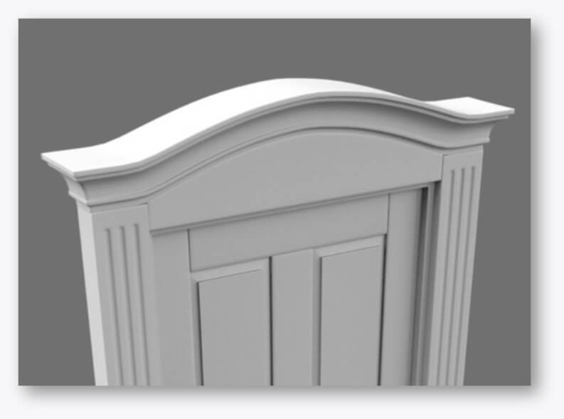 Ornamented wooden crowns can be mounted only on the exterior side of the door, from inside or on both sides. The crowns can be straight or arched. They can be enriched with ornamented milling cutters, additional wooden feet or other elements at the request of a customer.