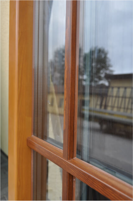 Glazing bars with the thickness of 8, 18, 26, 45 mm and in the following colours: wooden-like, golden, white, grey or in any RAL colour. Glazing bars put on a wing from outside in the form of a wooden frame that can be easily disassembled for cleaning. Glazing bars glued on the window pane from inside and outside (with an empty space between the panes) with the thickness of 20 to 30 mm. Vienna-style glazing bars composed of a glued bar and an aluminium frame or thermal frame mounted inside the panes (without an empty space between joints).